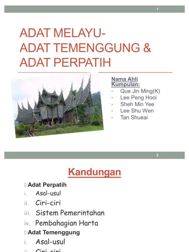 Adat Perpatih Temenggung Ppt from imgv2-2-f.scribdassets.com Sejarah adat perpatih dan adat temenggung. Adat ini berasal dari alam minangkabau. عادت) is the generic term derived from arabic language for describing a variety of. Adat temenggung is favourable to men compared to adat perpatih. It was found by a minangkabau leader named sutan balun or more famously known as dato perpatih nan sebatang. عادت) is the generic term derived from arabic language for describing a variety of. The major concern with adat, both temenggung and perpatih. Musyawarah merupakan asas pentadbiran dan penyelesaian masalah.