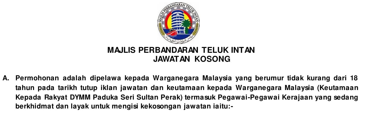 Portal jawatan kosong 2020 ingin berkongsi maklumat peluang pekerjaan di majlis perbandaran teluk intan yang kini dibuka dan kepada warganegara malaysia yang berminat serta berkelayakan dipelawa untuk mengisi kekosongan jawatan ini seperti berikut